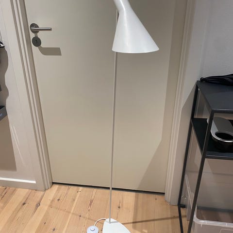 Søger AJ næbbet væglampe eller standerlampe i pæn stand farven okkergul.