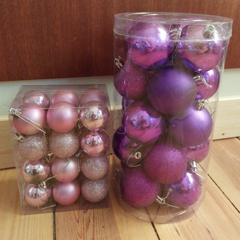 Smukke kugler i lyserøde og lilla nuancer.