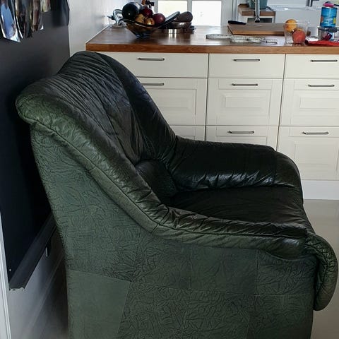 Sort læder lænestol. Små slid huller i sidde hynde (Billed 3).