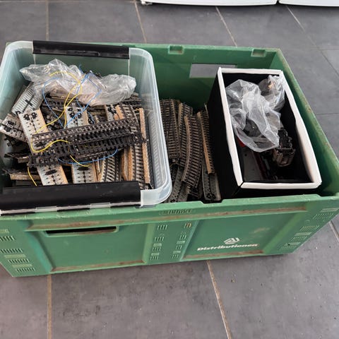 Indeholder skinner, bygninger, tog, vogne og sporskiftere.
