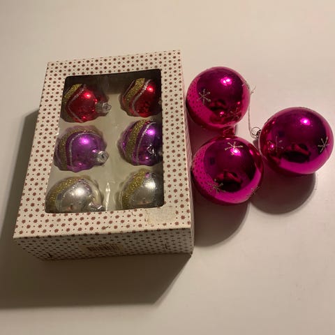&Tradition Juledekoration Julekugler i forskellige størrelser og farver, herunder guld, hvid, lilla og pink. Materialet er glas, og produkterne er velegnede til juletræsdekoration. Sættet indeholder flere julekugler med forskellige mønstre og finish.