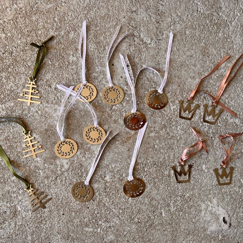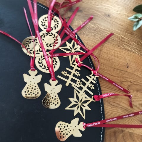 Smukke tynde gavemærker / ophæng i metal fra Georg Jensen. Kan bruges på træet, grene eller måske til en smuk indpakning.