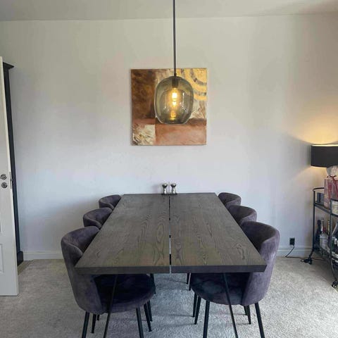 Helt nyt spisebord, pakket ud i dag. Sælges da det er for stort til vores stue, afhentning på Nørrebro. Nypris 5.499kr, plus levering der fra firmaet koster 300 kroner. Målene er 150/190/230, hvor 150 er uden tillægsplader