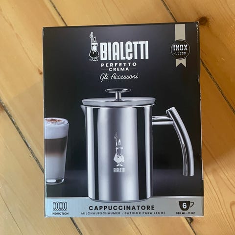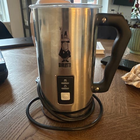 Mælkeskummer fra Bialetti. Den store model. Brugt, men i god stand. Virker ikke på induktion.