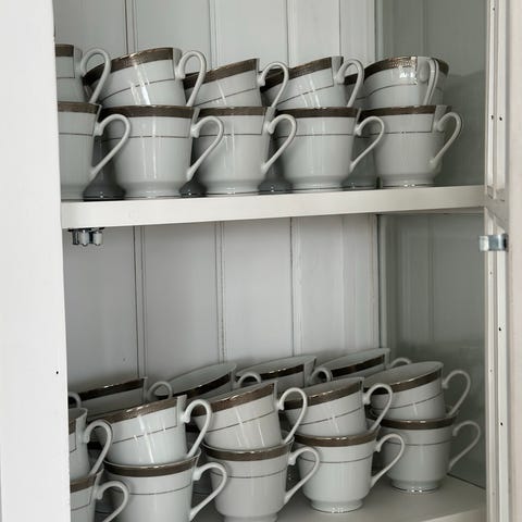 Utroligt festlige imponerende kopper i høj kvalitet fra Lene Bjerre Carlton serien sælges nu. De har en svag lys blå kant og dyb sølv kant. Jeg har 8 stk. Og sælger dem da jeg samler på de hvide og har 40 af dem og fik disse med lys blå kant ved en fejl.