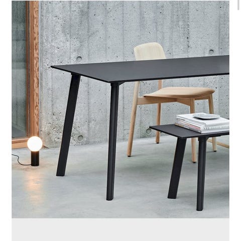 Bordplade i sort/ink black laminat, stel i sortlakeret træ.