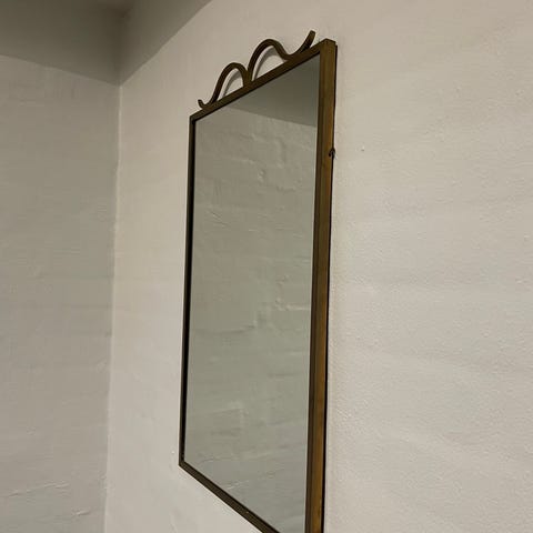 Smukt gammelt entré spejl og lille glashylde o messing sælges.