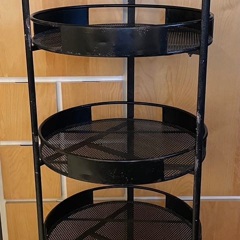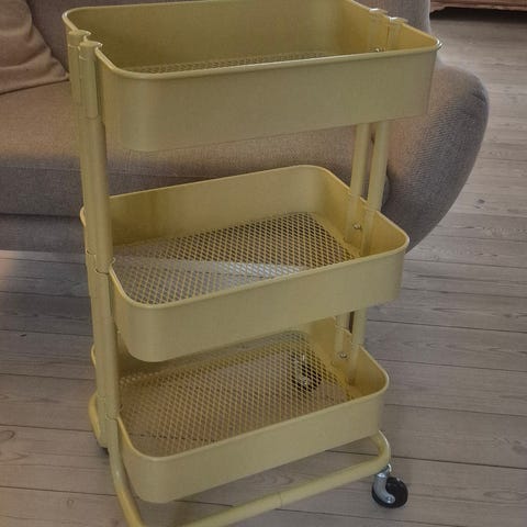 20 stk Rullevogne med rustfri stål kurve 600 kr pr stk H 180 L 60 B 42. Der er 3 forskellige varianter f.eks med kurve op til 1 meter. Kurvene kan tages helt af.