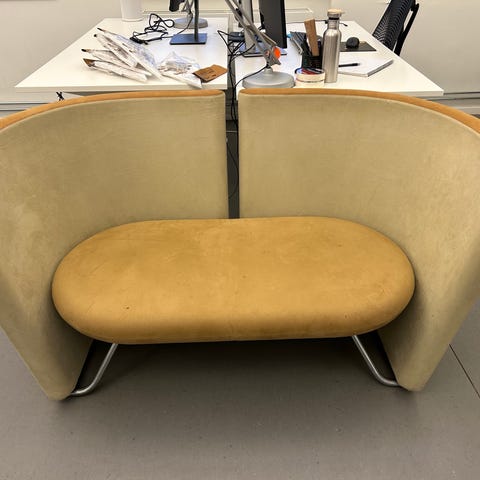 Sofaen's syning med Bang og Olufsen mærke kan klippes op og fjernes hvis man ønsker det.