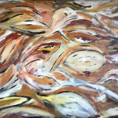 Malerier malet af Eva Bruselius sælges kan hænge på mange måder.