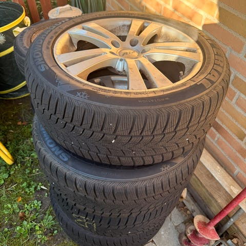 Sæt bestående af fire 17 tommer vinterdæk monteret på alufælge. Du kan osse bare bruge dækkene!!