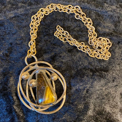 Vintage Royal copenhagen Halskæde med blomstervedhæng “ forglemmigej “ blomsten er i porcelæn med en similisten er 2 cm dia.. Kæden er forgyldt ( 40 cm L).`` og stemplet “ RCP”