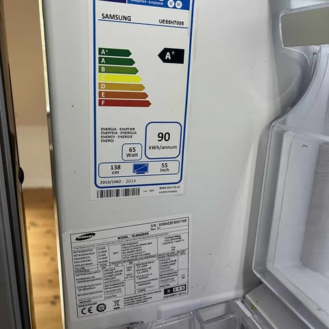 Klistermærket på køleskabet fjernes ved køb, det blev ikke lige gjort.