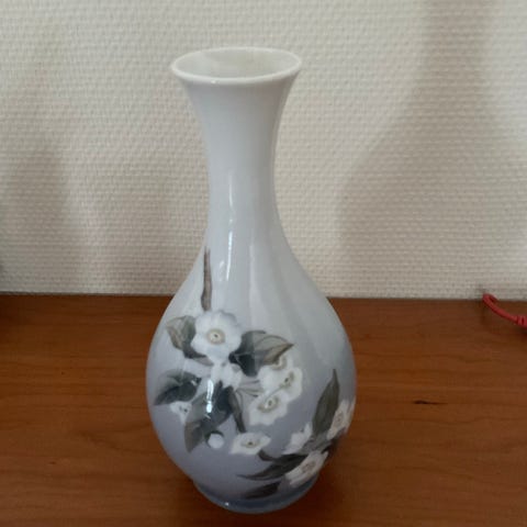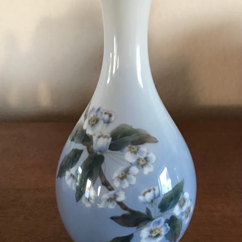 Royal Copenhagen vase med dekorationen “Æblekvist” (et motiv med en blomstrende æblegren).