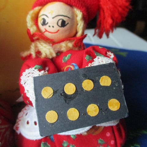 1) RØD STOR KUGLE MED FLOT MØNSTER GREN ,30 KR !!