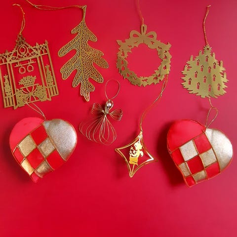 2) 1 STK RØD KUGLE MED GULDMØNSTER 25 KR !!