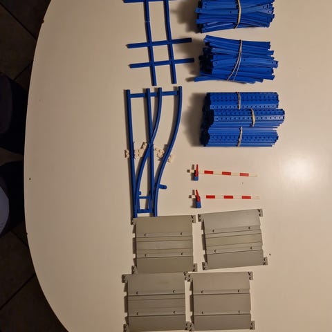 Stor samling blå skinner fra 1960'erne-1980, fra de gamle 4,5V tog: