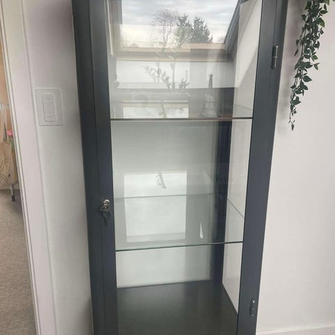 Jeg har to grå vitrineskabe fra IKEA. De er modellen Fabrikör.