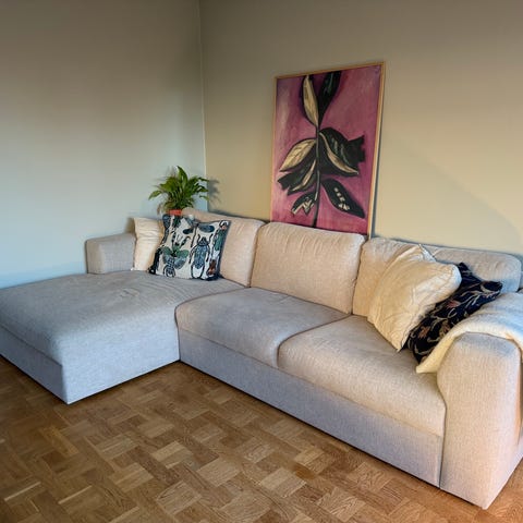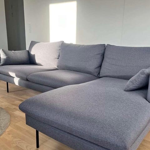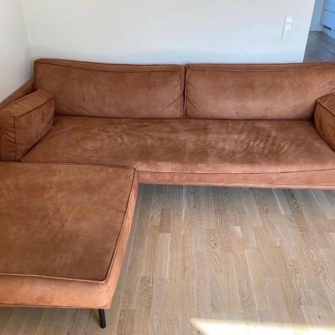Sofaen er brugt sparsomt siden den blev købt i medio 2021, og har derfor ingen synlige brugsspor. Er behandlet med imprægnering.