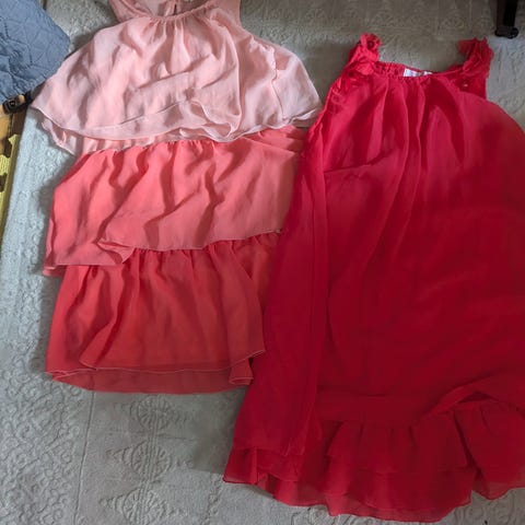 Den ene kjole har desværre lidt pletter fra sæbevand så kan følge med gratis hvis man vil se om den kan reddes.