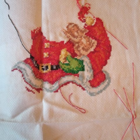 Smuk julesok fra Line Sander Studio. Jeg har aldrig selv fået brugt julesokken og derfor sælges den nu. Line Sander har syet den ud af antikke amerikanske quilte, derfor er der almindelige brugsspor. Den er gået fra et flere steder i syningen, da det er gammelt antikstof, man skal selv kunne lappe den, og sætte nyt stof de steder hvor den er gået itu indtil vatteringen. Se alle foto grundigt igennem inden køb.