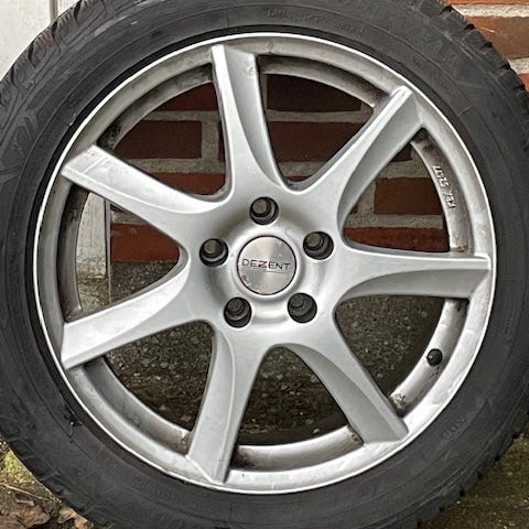 4 næsten nye, komplette Dezent vinterhjul monteret med premium dækket GOOD YEAR Ultra Grip Performance 3 M&S i målene 225/55R17, 97H, og med fælgribbe for maksimal beskyttelse ved kantstensparkeringer.
