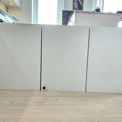 To køkkenskabe / overskabe med justerbare hylder. Muligvis IKEA.