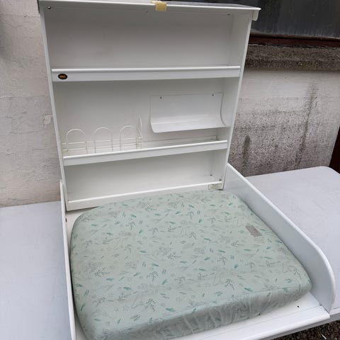 Der er lidt rust i bunden, men det ses ikke når puslebordet er monteret på væggen. Måske af børnene :-)