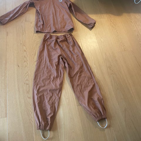 Wheat regntøj i størrelse 104 farve ink, i rigtig god stand.