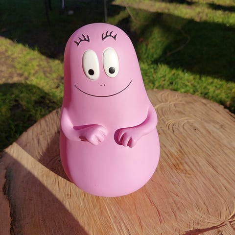 Barbapapa Barbapapa sparebøsse lavet af plastik i flere farver. Figuren forestiller karaktererne Barbapapa og Barbamama med deres børn. Sparebøssen har en åbning til at indsætte mønter og en skrue på bunden til at tømme den. Produktet er velegnet til opbevaring af mønter og som dekorativ genstand.