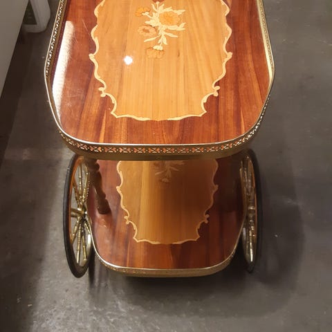 Udført i messing med smukke detaljer - 2 glasplader og 4 hjul.
