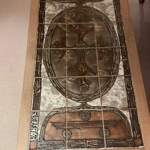 Vintage bord i formentlig palisander og bejset understel i anden træsort med flot kobberætsning som en rustik og modstandsdygtig topplade. Svensk produceret i 1960erne. Rigtig fin stand med alm patina og brugsspor. Lignende set til 3000-5000kr på vintage sites. Måler 72cm i bredden og 51 cm i højden.