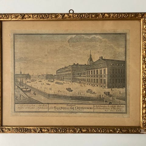 Antik indrammet kobber tryk