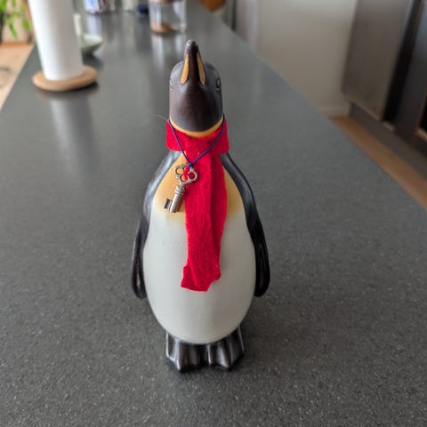 Pondus sparebøsse original fra Knapstrup. Meget fin 29 cm stor Pondus keramik sparebøsse med original vævet tørklæde og nøgle.