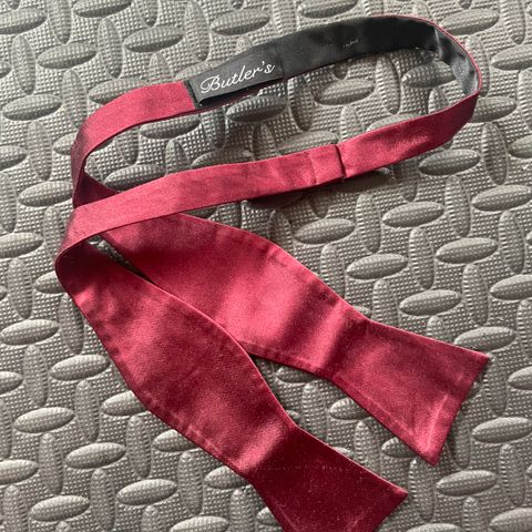 En vinrød, forbundet, strikket sløjfe fra Primark.