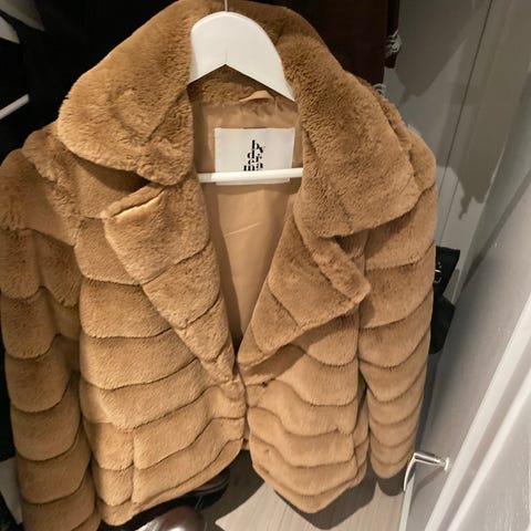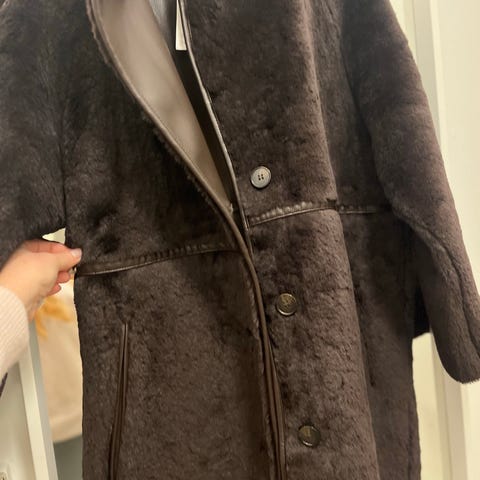 Næsten som ny. Flot pels jakke med krave og trykknapper. Lommer foran