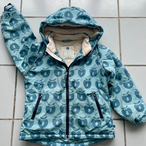 Str. 4-5 år. Diverse detaljer med vindfang ved både ærmer og mave gør at jakken hos os har kunnet anvendes i to vintersæsoner.