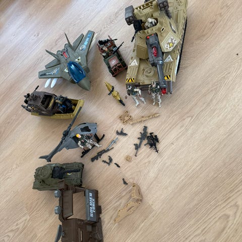 Forskellige Soldier Force legetøjsstykker. Har ikke eller næsten ikke været brugt, da vores drenge ikke var interesserede. Prisen er for det hele.