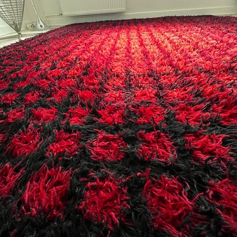 Tæppet er ca. 5 år gammelt og kommer fra ikke-ryger hjem.