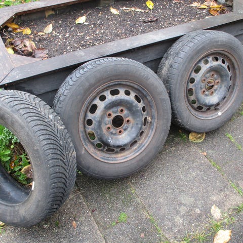 2 af dækkene har kørt en vinter, og de 2 andre har kørt 2 vinter, sælges samlet for 500 kr
