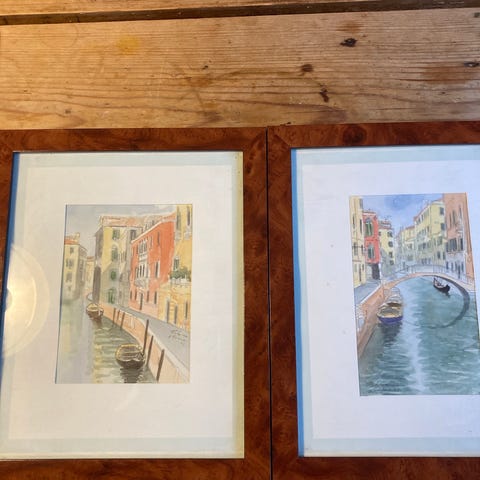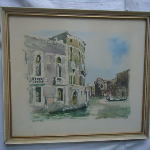 Købt i Venedig i 1976. Smuk indramning. tryk/ akvarel?
