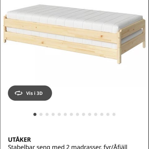 To Ikea Utåker senge som kan bruges som enkeltsenge eller foldes ud til enkeltsenge eller en dobbeltseng. Der følger to madrasser med model Åsvang. Pæn stand. Kun brugt til gæster. Alt er købt for to år siden. Afhentes på Frederiksberg