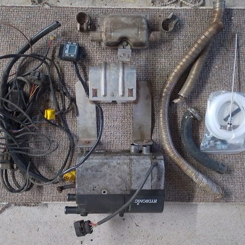Brugt 4,7 kW diesel bilvarmer / oliefyr med div. reservedele og ubrugt brændstofpumpe. Oliefyrets stand er ukendt, sælges derfor som reservedele.