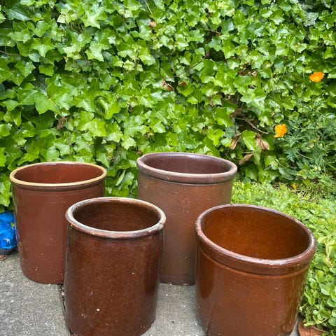 Virkelig pæn og velholdt stor brun syltekrukke, højde ca. 27 cm og diameter 24 cm, pæn i glasuren og uden revner.