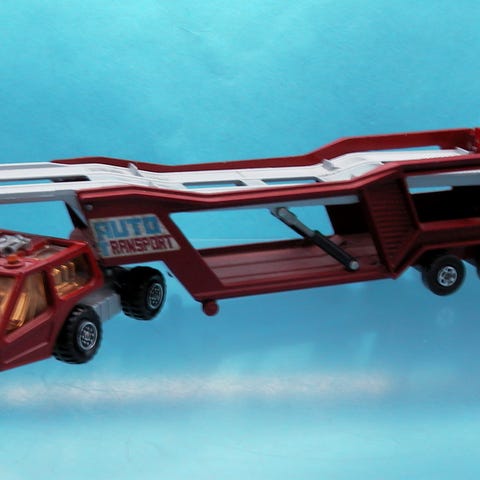 Dette er en Matchbox Super Kings K-13/20 DAF lastbil, en trykstøbt model, der blev produceret i 1971.