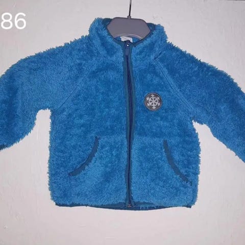 Plys jakke, mads og mette, str 98, blå med grøn lynlås, ok stand. 35 kr