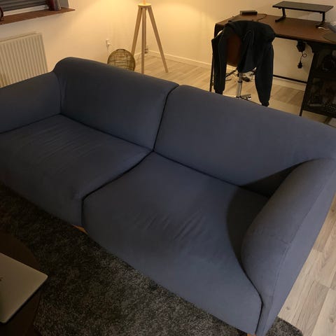 Flot blå sofa med puf - fejler intet. Kommer fra hjem med hund, røgfrit hjem.