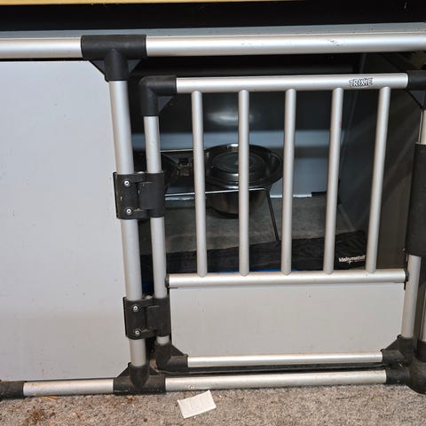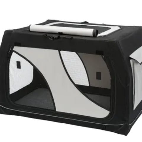 Trixie hundebur i str. L fremstillet i aluminium og plastik med en grå og sort farvekombination.