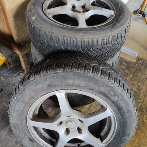 Fint mønster. Ca. 8mm på bagdæk og ca. 6mm på fordæk. Der er røget et par afbalanceringsklodser af, så de bør afbalanceres inden montering. Ellers lige til at sætte på. Sælges kun fordi bilen er solgt. ET 47. (Passer på de fleste VW, Skoda, Audi m.v.)