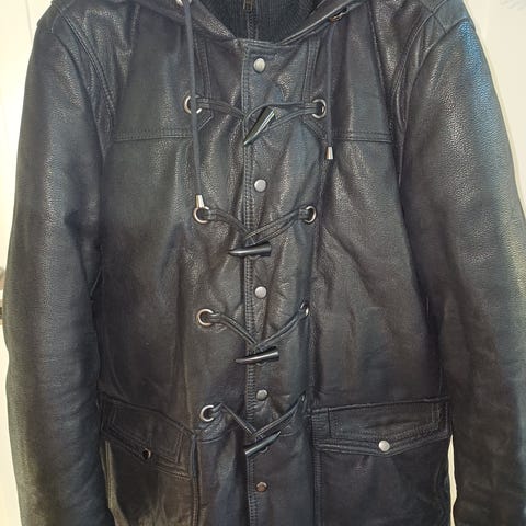 Næsten ny læderjakke. Der er en vest af pels indeni, som kan lynes ud.